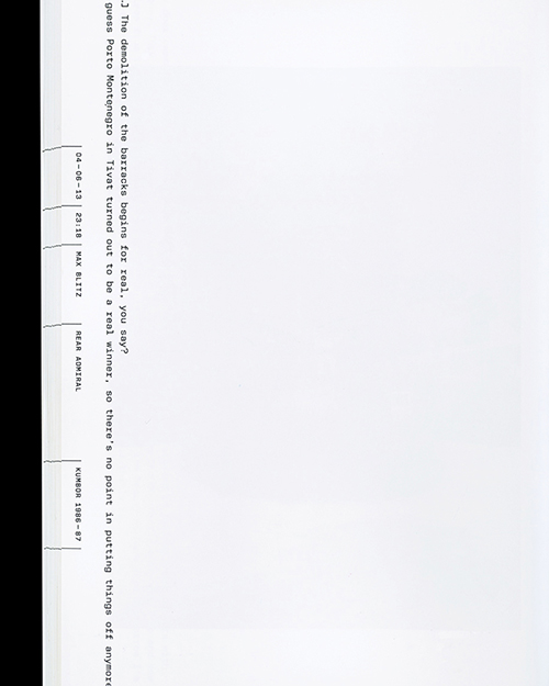 Once a military barracks, now a luxury resort – the book Close to Portonovi explores the transformation of the former Orjenski Bataljon military site in Kumbor into the tourist destination Portonovi Montenegro. Through internet forum posts from former Yugoslav People’s Army conscripts and a photo series by Zara Pfeifer, the book captures the tension between past and present, memory and reinvention.