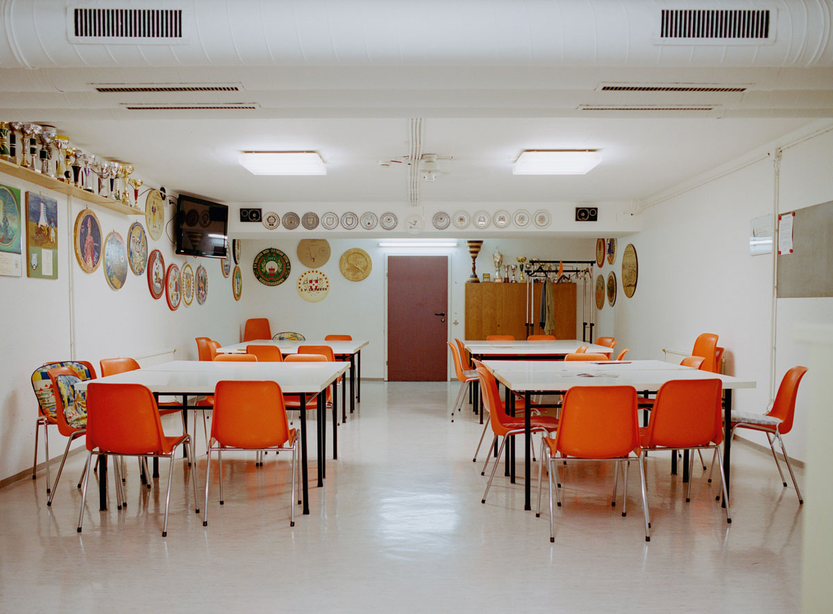 In 2013 artist Zara Pfeifer began documenting this remarkable vestige of modernism in photographs. She soon discovered the community spaces that Glück created in each building’s belly. In these windowless rooms, thirty-three clubs and groups organically evolved over decades and continue to provide a community for the ten thousand residents of the complex through activities like ballroom dancing or aerobics. In her long-term project, Pfeifer focused on this part of life in Alterlaa—participating in club life, establishing relationships, briefly living in private apartments, and experiencing first-hand the cohesive social fabric that resulted from this architectural experiment.