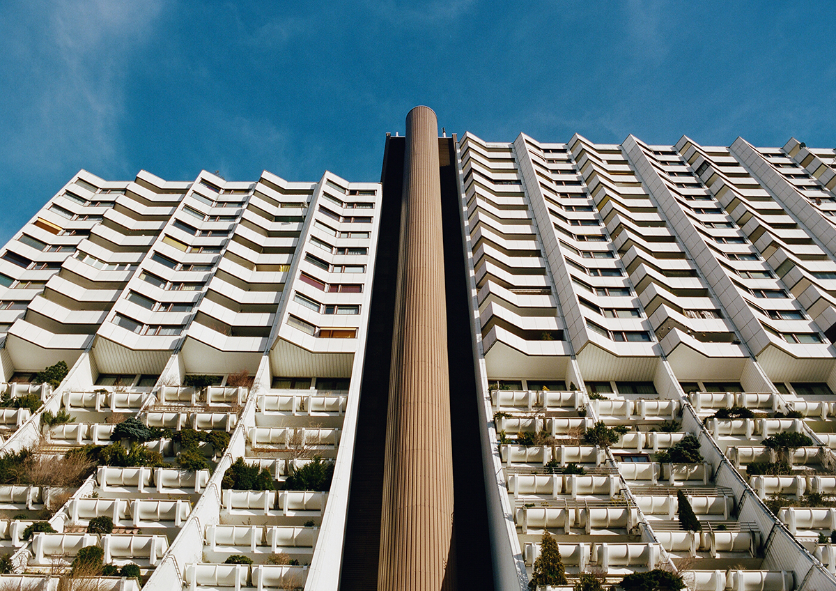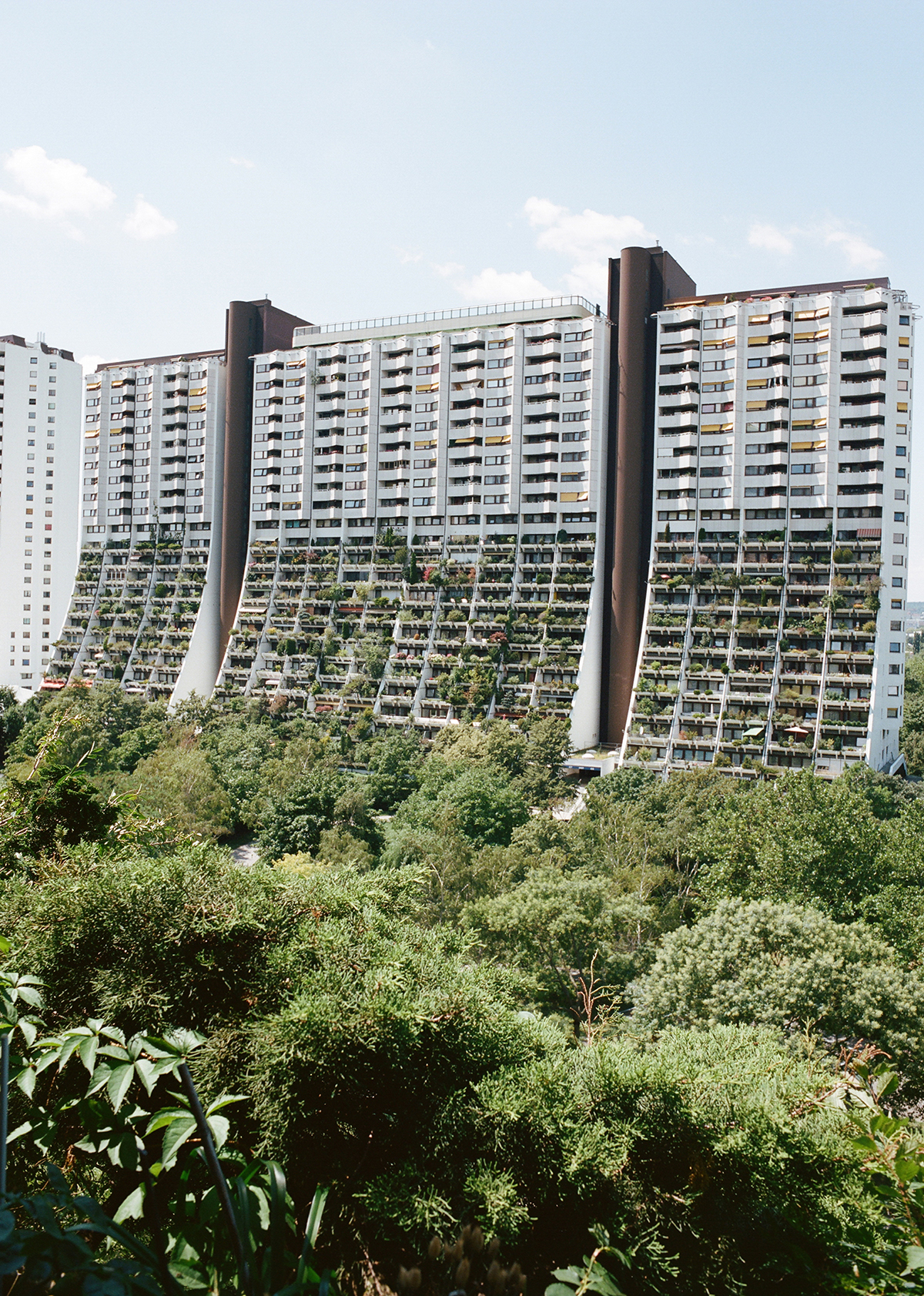 In the mid-1970s an unusual subsidized housing project was built in Vienna—curvy concrete buildings that evoke notions of spaceships or Singaporean skyscrapers, conceptualized as a forward-looking satellite city providing everything a resident might want or need. From the beginning, Alterlaa, a housing complex of 3,200 apartments in three vast blocks, stood for accessible luxury built in concrete, a utopian notion that anyone can live in proximity to fresh air, water, and greenery. Austrian architect Harry Glück also placed great importance on community—so much so that his designs intentionally facilitated interaction.