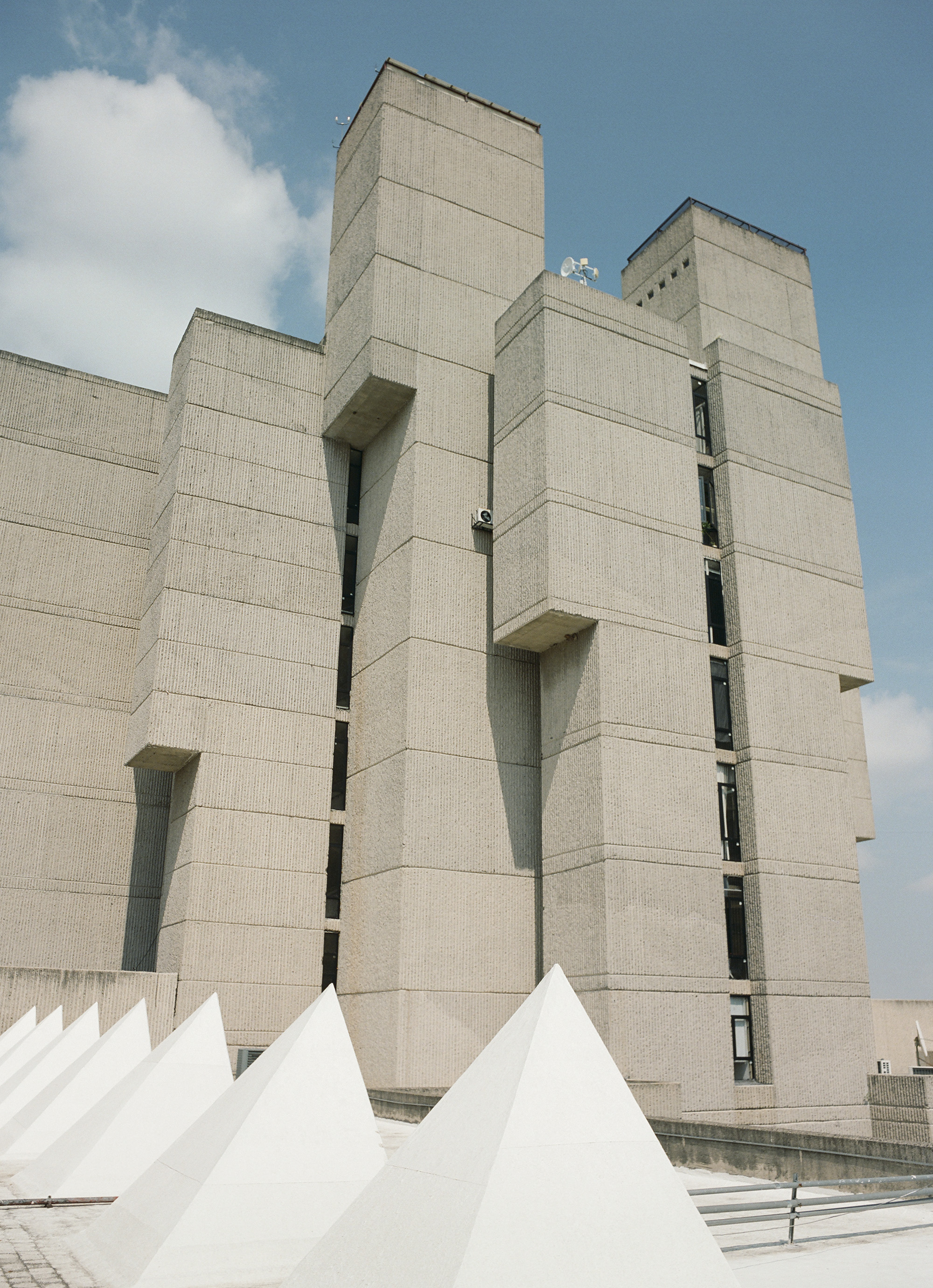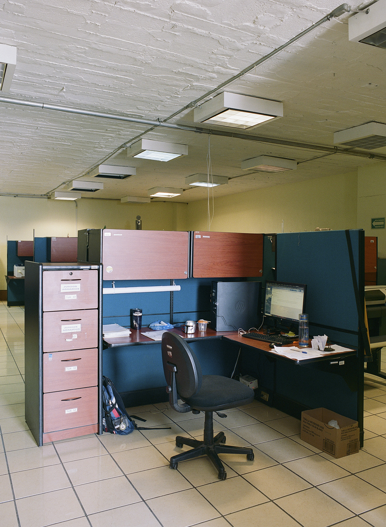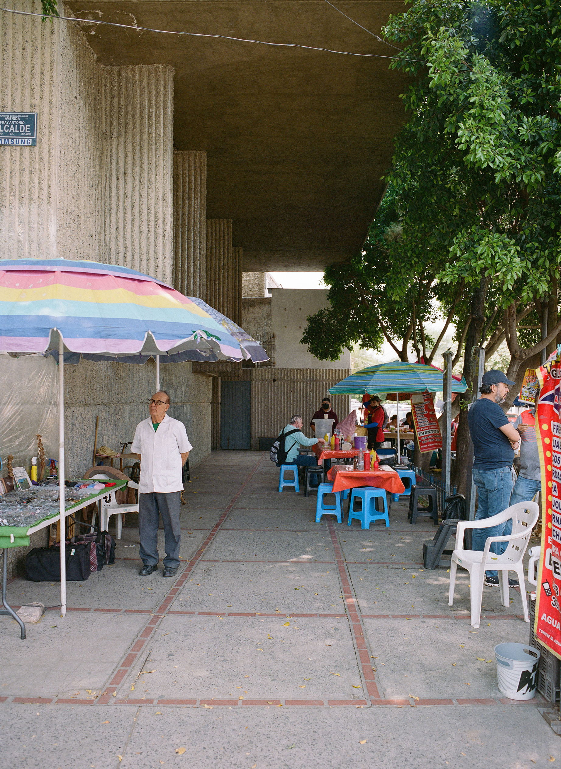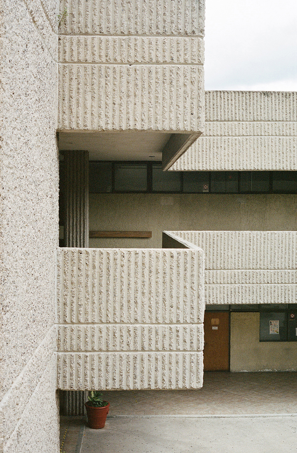 Alejandro Zohn's largest building is striking even from a distance, towering over a low residential neighbourhood like a concrete castle. Everyone in Guadalajara has been to El Archivo, as a visit is required for registering for example a birth, marriage, or death. The inner courtyard always teems with people and street vendors set up shop outside in the shade of the brutalist blocks. Most of the building itself is closed to the public, but thanks to welcoming staff it was possible to get a glimpse of the municipal offices and archives, which contain urban plans, newspapers, and most other records of Guadalajara's history. Zara Pfeifer took her analogue series „El Archivo“ during a five days stay in September 2022.