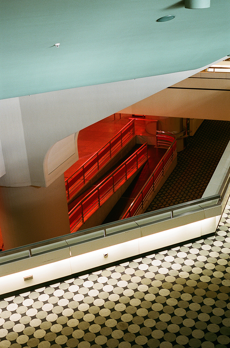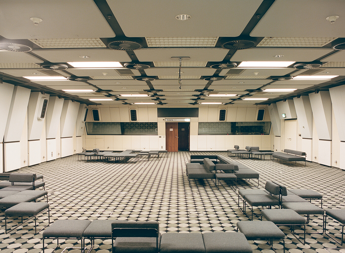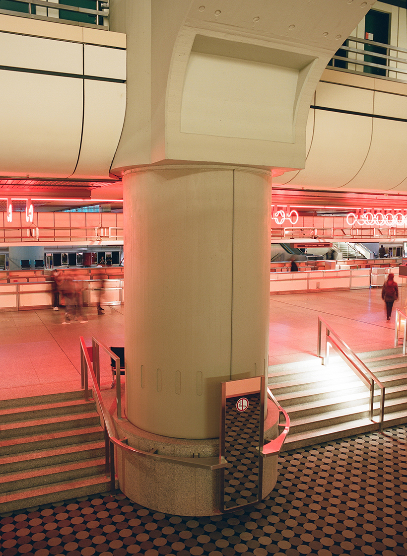 Built in 1979 as West Berlin’s answer to the East’s Palast der Republik, the ICC is a singular product of its time: the 300-metre-long congress centre straddles a highway, features an auditorium that can be raised on chains to reveal a ballroom underneath, as well as 9,000 seats with built-in ashtrays. The future of the ICC has been in limbo since it was decommissioned a decade ago, but the architecture remains intact. Over several visits in 2021, Pfeifer documented this time capsule of late-1970s Berlin as it sits in standby mode. Focussing on interior details such as the handrails, tiles and wall-to-wall carpet, or the neon light and information system – designed by the artist Frank Oehring when he was still a student – ICC is an appreciation of the architecture itself and of the shoot-for-the-moon mentality that made it possible.